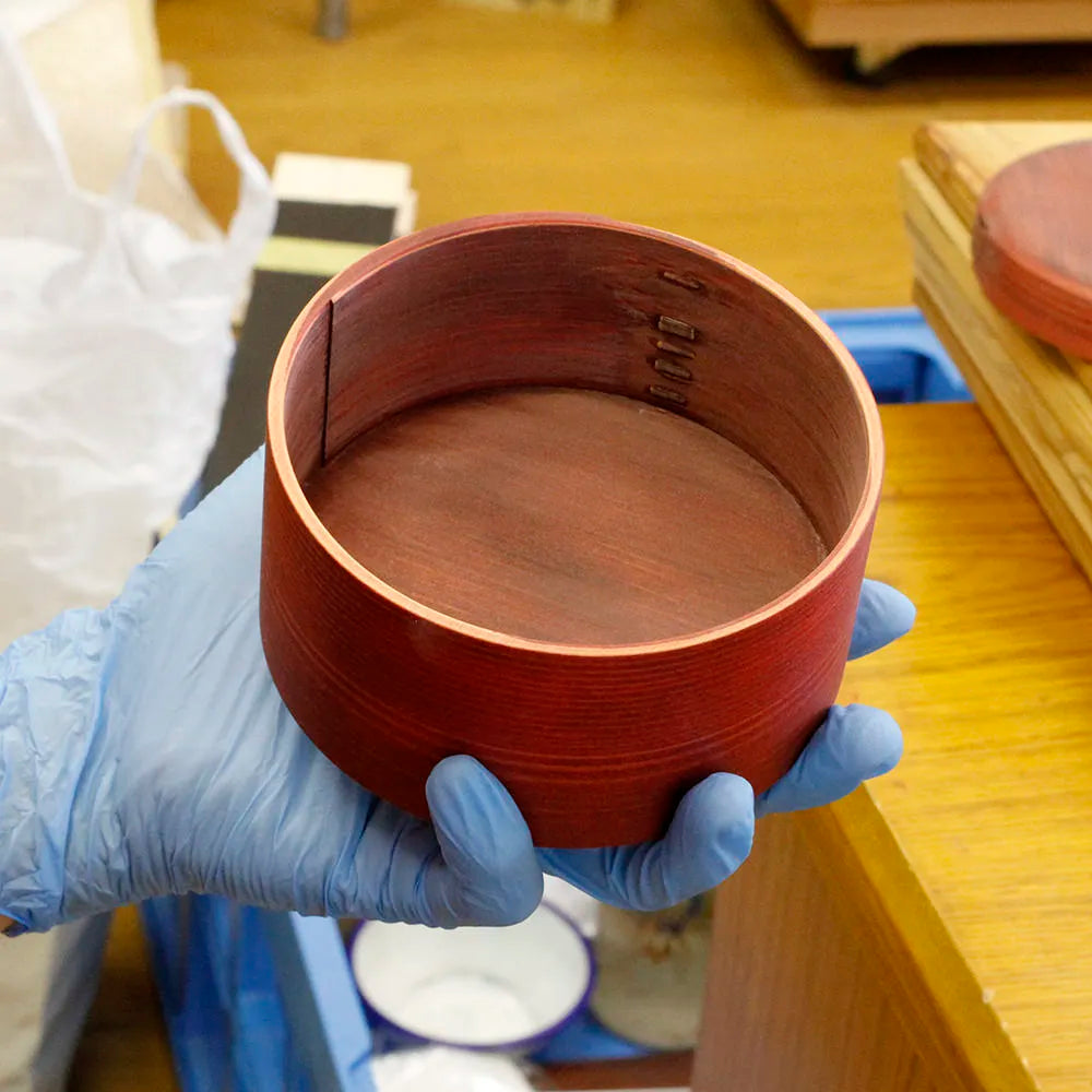 The northern region of Akita Prefecture, set against the backdrop of the abundant Shirakami Mountains and blessed with mining resources, flourished through the river transport of the Yoneshiro River during the Kitamae Ship trade era. Grateful for the blessings of nature, the craftsmen of magewappa, with their expertise in woodworking, seized the opportunity to acquire a new skill—lacquer coating. This skill enhances the fine grain of Akita cedar, making it more durable. Mastering this technique is considered a valuable asset.
