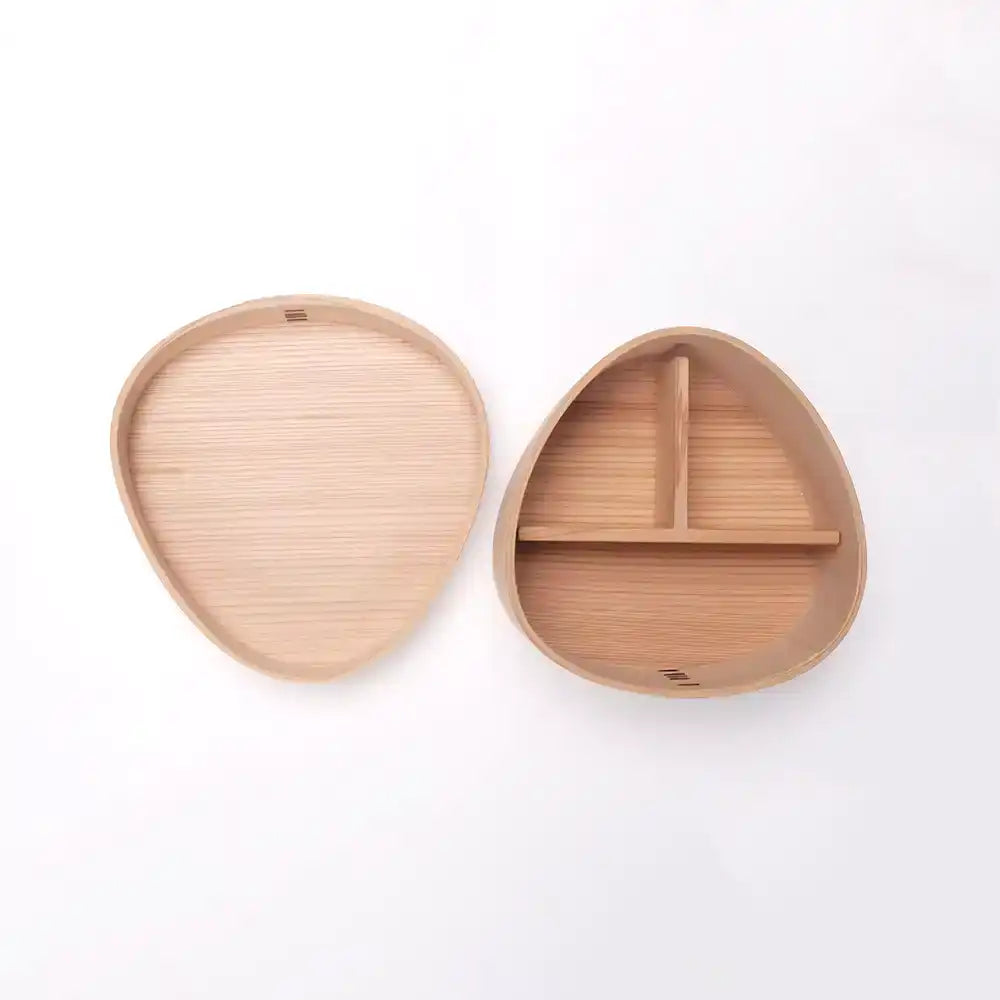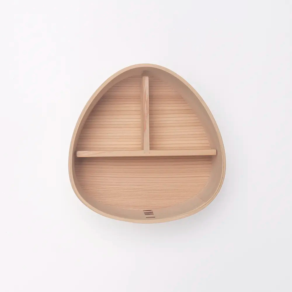 人気の「白木おむすび弁当箱三角」を一回り大きくした三角形のおむすび弁当箱。付属するT字の仕切りはご飯とおかずのレイアウトを手助けするお弁当作りの強い味方です。熱々のご飯で握ったおむすびと一緒に、彩り鮮やかなおかずを詰めて賑やかに。もちろん、炊き立てのご飯を詰めて、いつものお弁当箱としても。三角形の蓋を開ける楽しみは広がります。