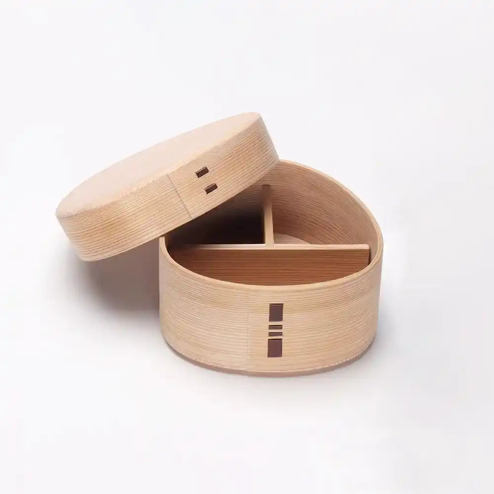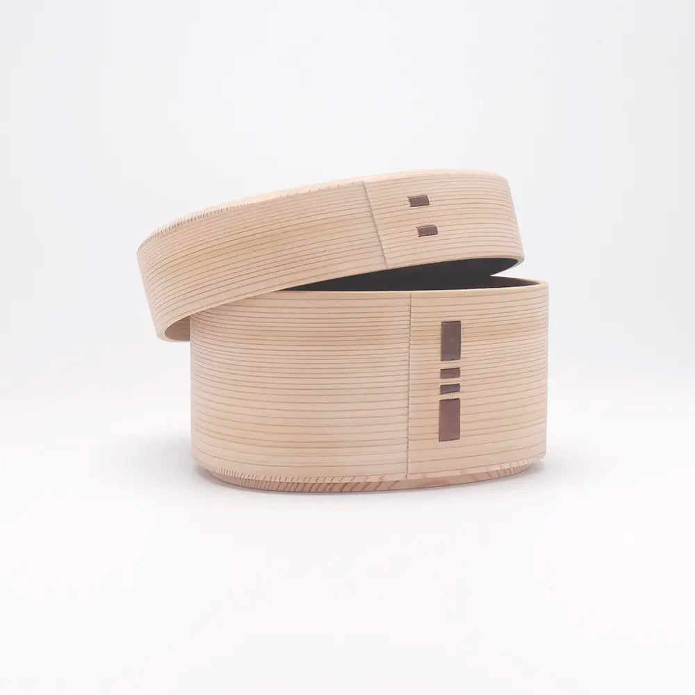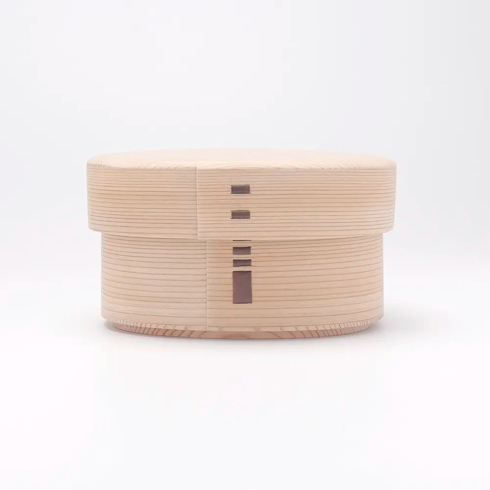 無塗装の「白木仕上げ」であることで、吸湿性・通気性を十分に活かし、白米をおいしくいただけるお弁当箱。杉のほのかな香りが、おいしさをより一層引き立てます。