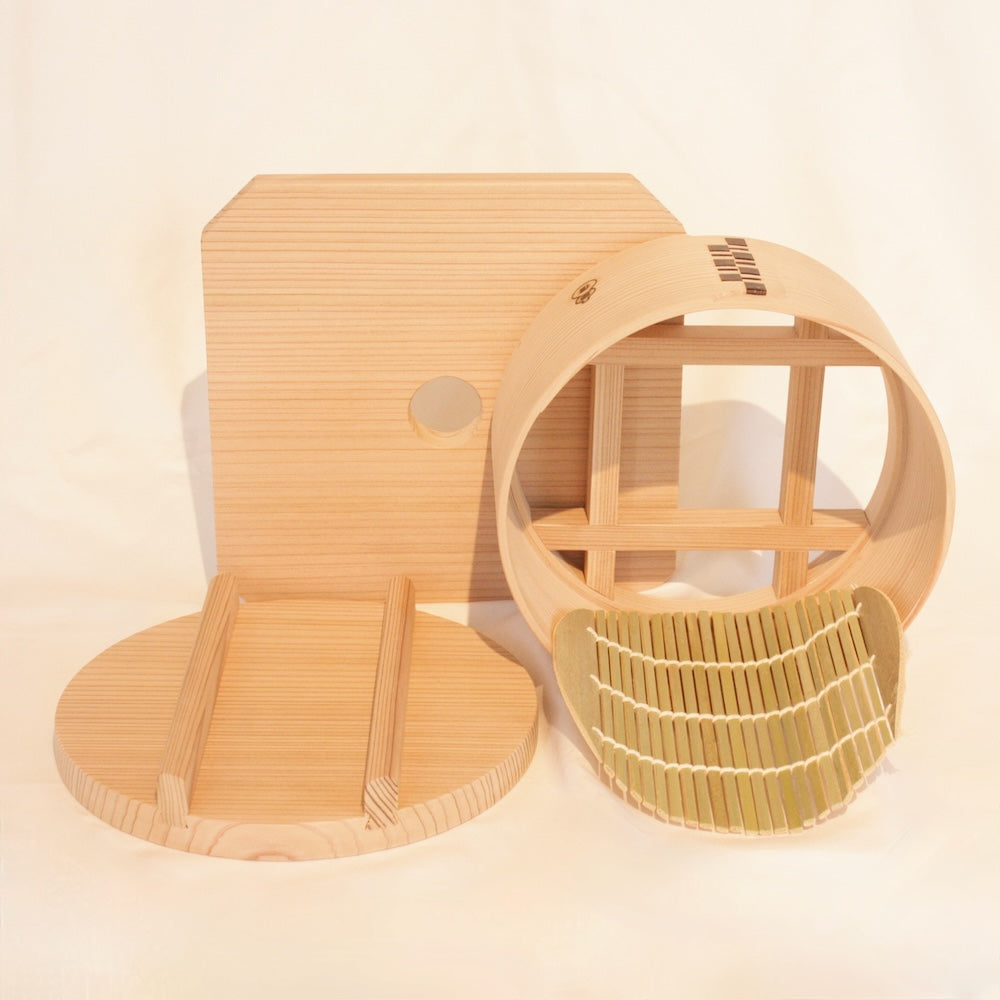 おこわや根菜類など、強火で蒸し上げるものに最適なのが和せいろ。蓋・本体・台・簀(すのこ)を一式にしてお届けいたします。